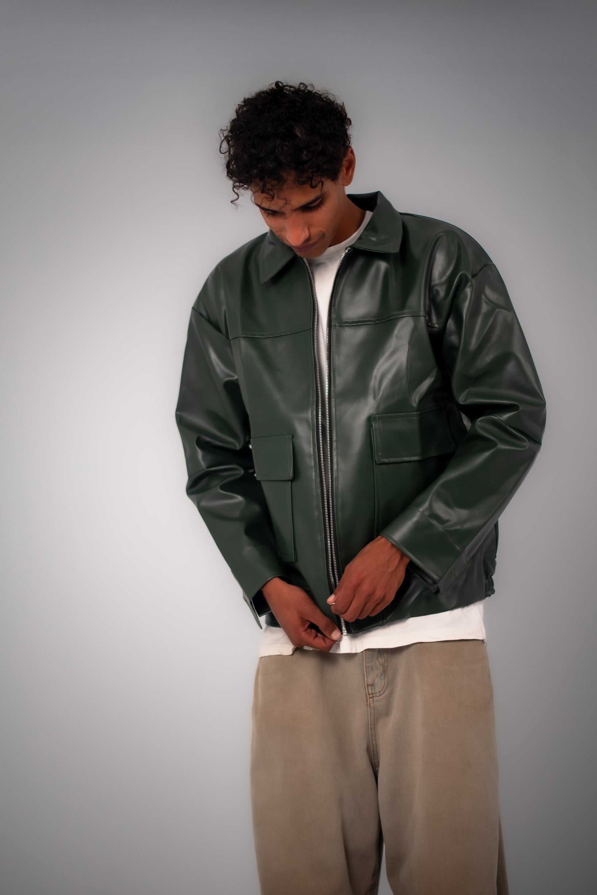 Olive Leather Jacket.